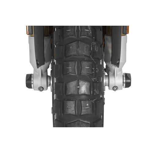 To complement our cardan crash bungs, we also offer crash bungs for the front axle of your GS. These small but effective parts efficiently protect the critical points of your bike and prevent damage to your fork legs and axle seats in the event of tipping over. Available as a set for both sides.