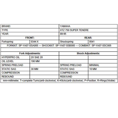 With all suspension solutions, the rear and front sections of the motorcycle should be adapted. You will find the right component for the rear of the Yamaha XTZ 750 Super Ténéré in our recommended accessories. Replacing just one component will not result in optimum riding behavior.