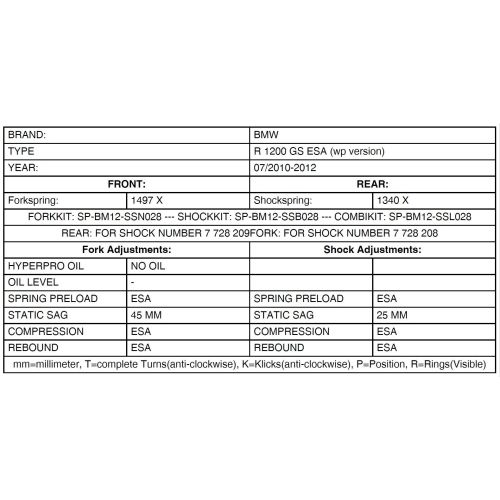 Info: Only fits * BMW R1200GS 2010-2012 with WP Original BMW ESA shocks *
