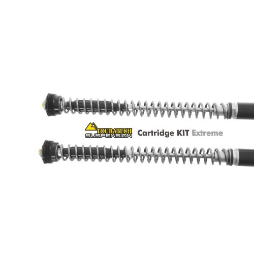 Putting it simply, the Touratech Suspension Cartridge Kit Extreme is a suspension strut for the fork and the absolute top end in terms of suspension technology. The Closed Cartridge is installed into the original fork. This way the fork bridge/handlebar mount, brakes and wheel control and handlebar geometry are retained in full. No additional modifications to the fork are required This Closed Cartridge is been developed perfectly for touring and riding with frequent and strongly differing loads and riding conditions or extreme requirements.