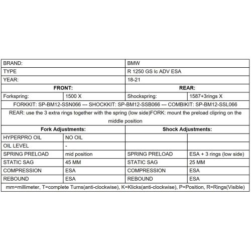 This Set of progressive replacement springs has been designed to match your motorbike perfectly, and offer a tremendous improvement in response and greater safety in extreme situations. Replacing the front and rear springs will lead to a significant improvement and more riding pleasure with your motorbike.