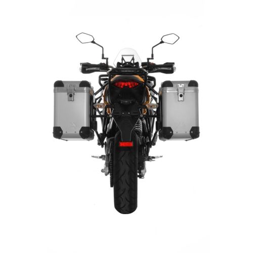 The aluminium pannier system again has a very robust construction. We have tried to bring the pannier racks and the panniers as close as possible to the motorcycle. Numerous tests have already been performed in order to ensure that the entire development satisfies the required demands.